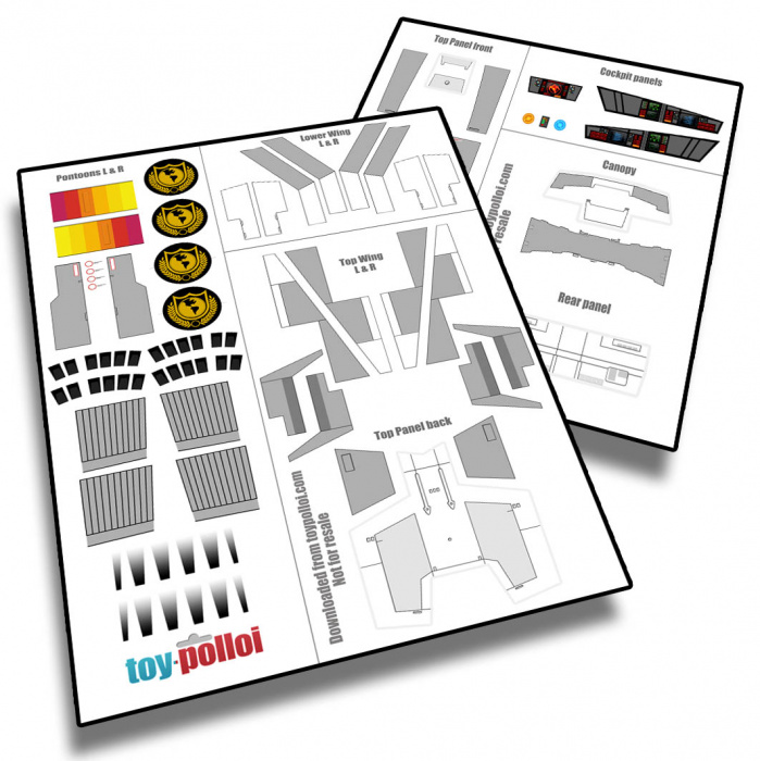 There are so many stickers for this ship that you need to print onto two A4 sheets. These can be printed onto clear sticky backed acetate printer paper, or glossy sticker backed printer paper for best results.