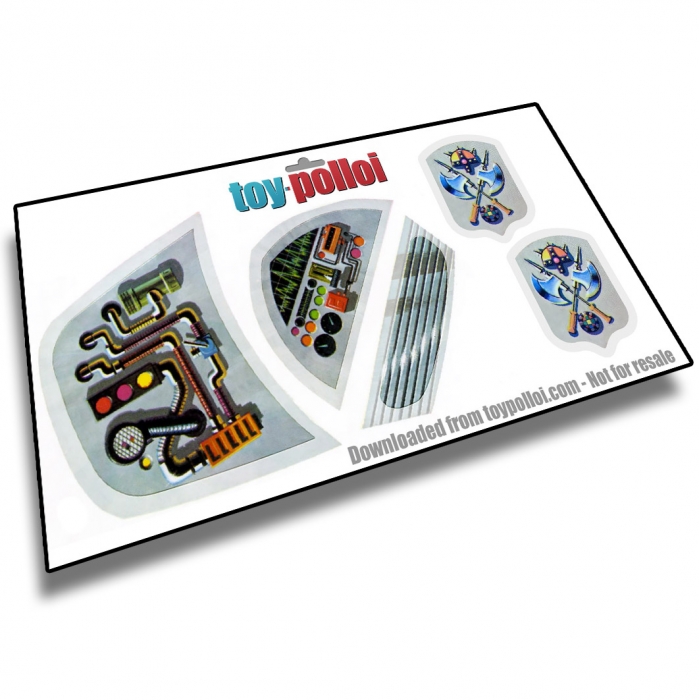Download and print this PDF file onto photo quality paper. Then follow the instructions in the video to create your own replacement decals for a vintage Masters of the Universe Stridor.